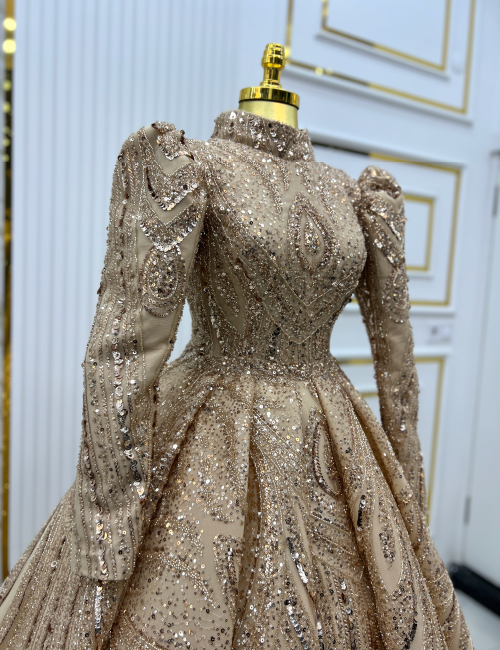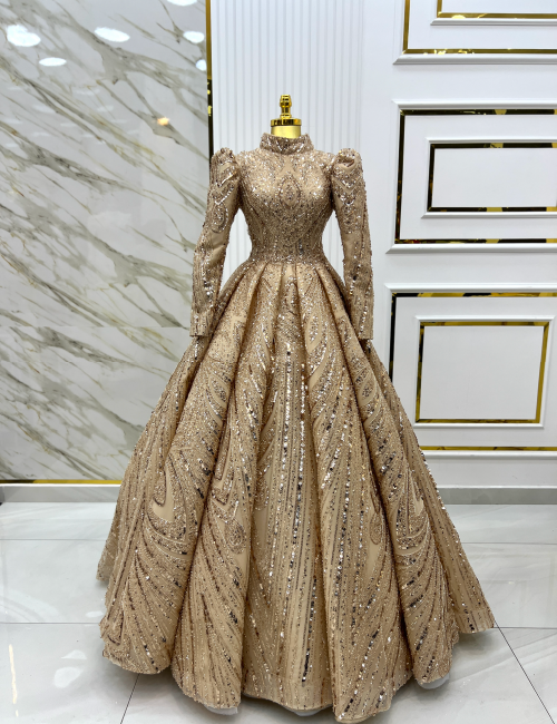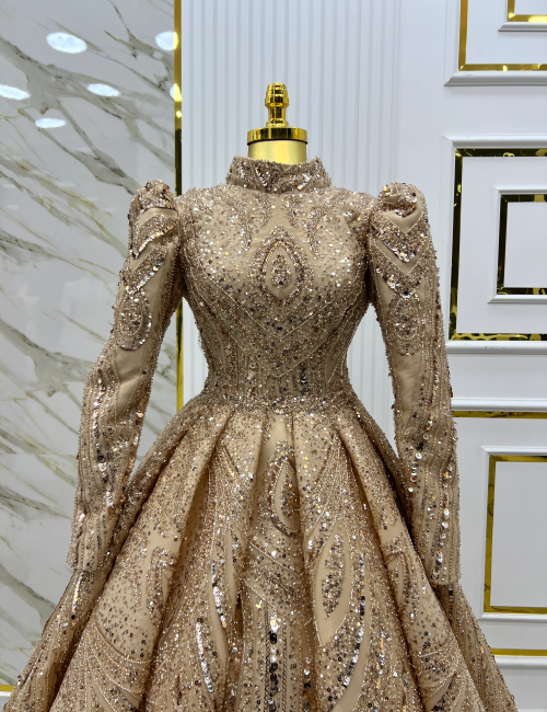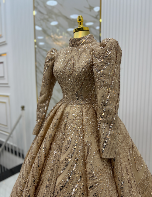 Altın Işıltısı Bindallı, zarif ve asil altın rengiyle, geleneksel dokuları modern bir tasarımda buluşturuyor. Parlak işlemeleri ve şık desenleriyle bu bindallı, her hareketinizde ışıldayan bir zarafet sunuyor. Uzun kollu ve yüksek yakalı tasarımı, hem klasik hem de sofistike bir görünüm kazandırıyor. Düğün ve nişan gibi özel günlerde göz kamaştırıcı bir atmosfer yaratmak isteyenler için mükemmel bir seçenek. Altın Işıltısı Bindallı ile unutulmaz bir şıklığa adım atın.