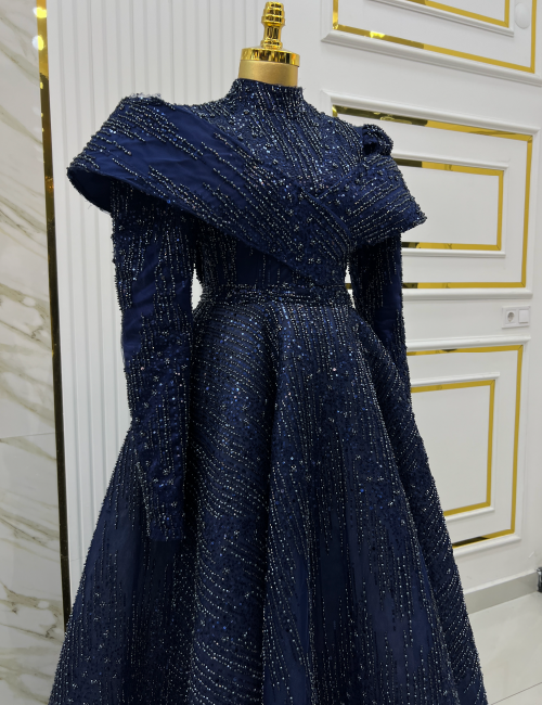 Safir Gecesi Bindallı, mavi rengin asaletini geleneksel bindallı zarafetiyle buluşturarak özel geceniz için unutulmaz bir görünüm sunuyor. İnce işçilikle detaylandırılmış işlemeleri ve modern dokunuşlarıyla hem klasik hem de çağdaş bir şıklık yaratır. Vücudu saran yapısı ve hareket özgürlüğü sağlayan tasarımı sayesinde rahatça kullanabilir, tüm gece boyunca kendinizi özel hissedebilirsiniz. Safir Gecesi Bindallı, kına geceniz için ihtişamlı ve zarif bir seçenek arayan gelin adayları için mükemmel bir tercih.